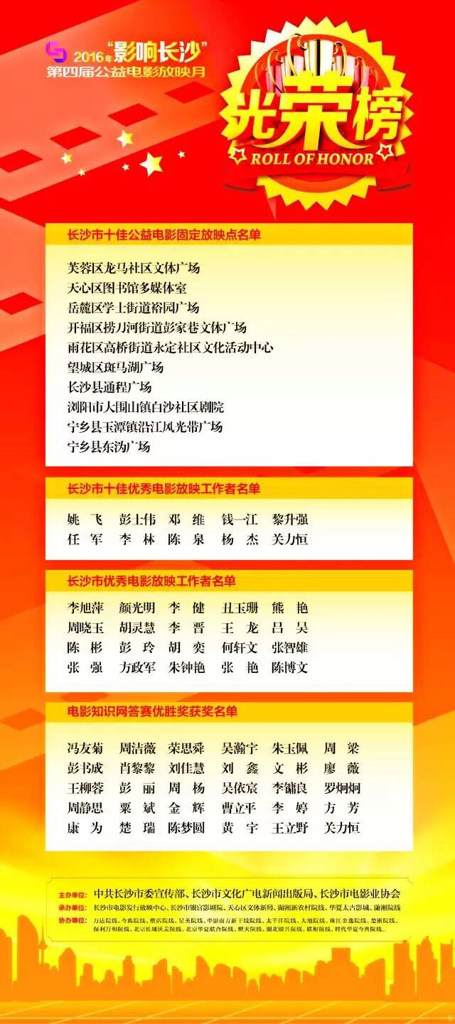 长沙市十佳公益电影固定放映点、优秀电影放映工作者、优秀电影放映工作者名单