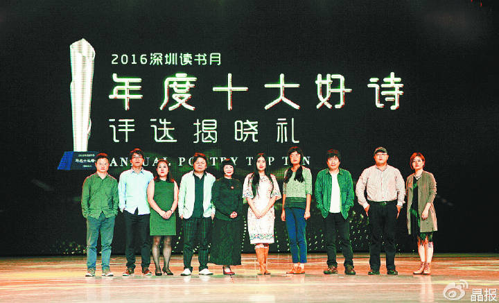 “2016深圳读书月年度十大好诗”出炉,图为获奖诗人及代表合影。