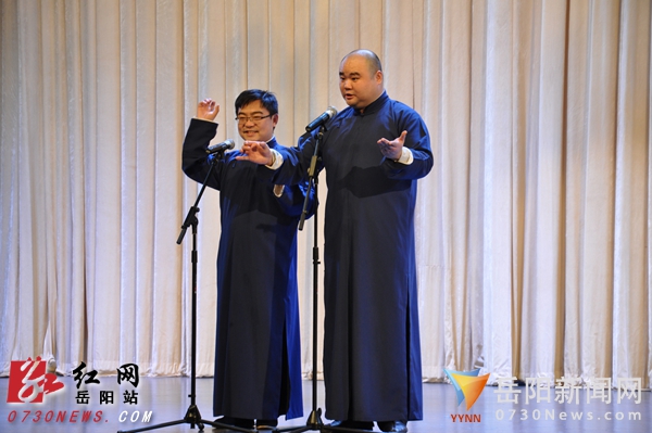 红网岳阳分站11月29日讯(分站记者 宁平 刘丰)11月27日,湖南省岳阳市文化艺术会展中心不时传出笑声、掌声、喝彩声,由著名相声演员大兵领衔的“笑工场”,令观众大饱“口福”。这是今年第11场“岳阳笑工场文化惠民系列演出”,让万余名岳阳市民享受笑的盛宴。