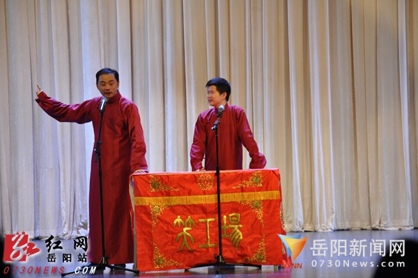 岳阳“笑工场”,老百姓的开心场。当天晚上的演出,节目丰富多彩,著名相声演员大兵等本土笑星表演了双簧、快板、相声、脱口秀、小品等,晚会最后,大兵和他的搭档“蠢得死”表演了《跳水冠军》双簧节目,将现场气氛推向高潮。