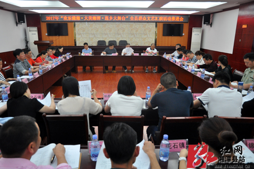 红网湘潭县分站5月8日讯(记者 杨建)为丰富人民群众精神文化生活,积极创建全国文明城市、凝聚全县力量助推“精美莲乡”建设,日前,2017年“欢乐潇湘·大美湘潭·莲乡大舞台”全县群众文艺汇演活动推进会召开,会议对今年我县“欢乐潇湘·大美湘潭·莲乡大舞台”群众文艺汇演活动进行安排部署。县领导李豪雄、曾耀辉、韩炎及相关单位、各乡镇相关负责人等参加会议。
