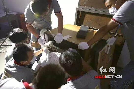 2017年7月28日,皿方壘从湖南广电大楼安全运抵省博物馆。
