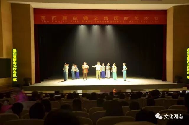 当晚,在灯光璀璨的陕西省戏曲研究院剧场,陕西省文化厅厅长唐利如、湖南省文化厅副厅长鄢福初、湖南省书法协会专家、陕西省戏曲研究会专家、学者,与现场观众一同观看了演出,精彩别致的演出获得了观众的热烈反响。观众中还有不少参加本次艺术节院团的演员。虽然外省观众对湖南花鼓戏不是很了解,甚至是第一次观看花鼓戏,但朗朗上口的湘音湘韵、精彩的表演、简洁大气的呈现让观众眼前一亮,演员真挚感人的演绎赢得阵阵掌声。演出结束后,组委会现场为演出单位颁发了“第四届丝绸之路国际艺术节文化贡献奖”的奖杯和证书。