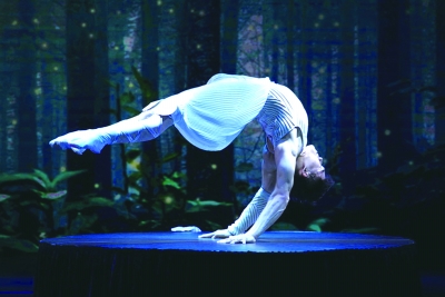 “上海之夜”文艺晚会中,杂技《单人技巧造型》备受秘鲁利马观众喜爱。