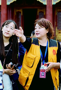 如今一晃已经五年,王婷在故宫已经服务了300多个小时了,当年仰慕“前辈”的姑娘如今也成长为别人眼中的“前辈”了。她服务过形形色色的游客:认真的、好奇的、吵闹的、走马观花的……也解答过各式各样的问题:有问价文物的,有询问服务设施的,有要求帮忙设计参观路线的……她渐渐学会用一颗包容的心对待各种各样的观众,因为“故宫是全中国、甚至全世界的遗产”,它对所有人开放,而志愿者的责任,就是帮助他们更好地领略故宫所蕴含的文化之美。