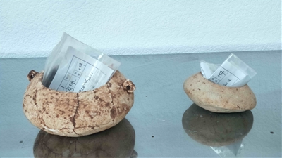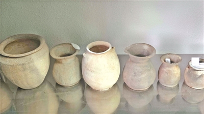 黄友明称,大顶山古墓群遗址地处粤北东江流域上游,遗址距离东江河畔不远,古墓群遗址发掘面积约600平方米。经过为期数月的抢救性考古发掘,考古人员共清理出西周时期墓葬多座,出土陶器与石器等各类文物数百件。黄友明告诉记者,墓葬随葬器物以类型丰富的陶器居多,而陶器以圈足器、平底器、圜底器和具有长颈、长身特征的陶器为主;器型有罐、壶、杯等;陶器纹饰有席纹、同心圆纹、三角刻花(刻画)纹等;石器则有双肩石锛、石铲、石戈等种类。