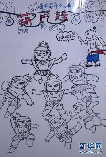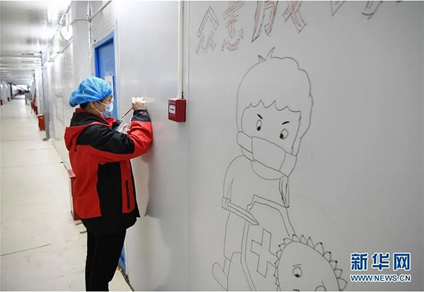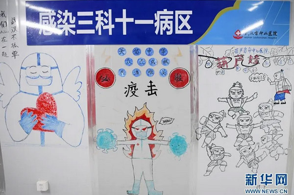 这是3月4日在武汉雷神山医院“艺术长廊”里拍摄的图画。新华社记者 费茂华 摄