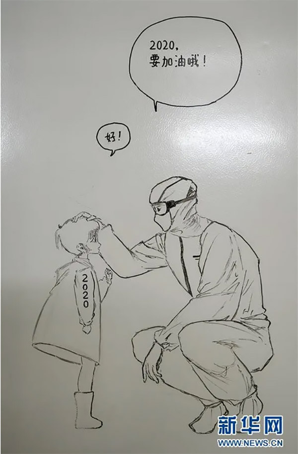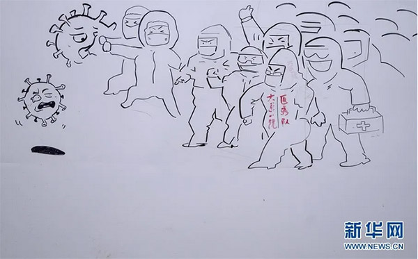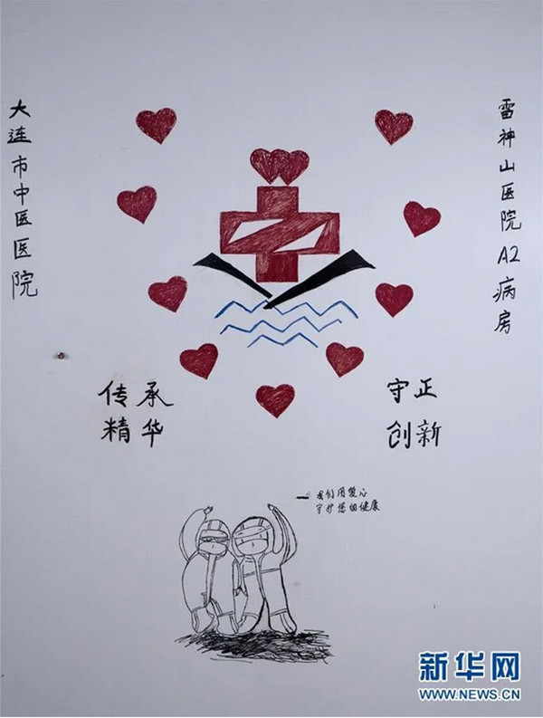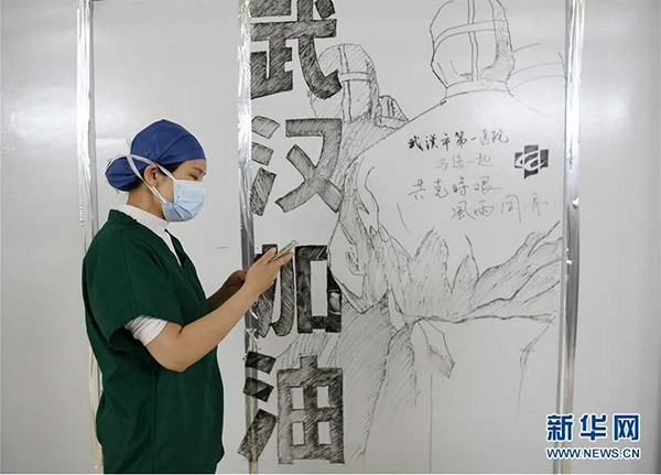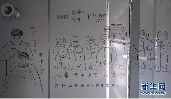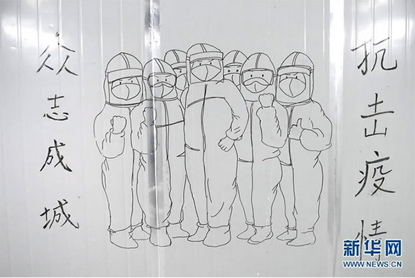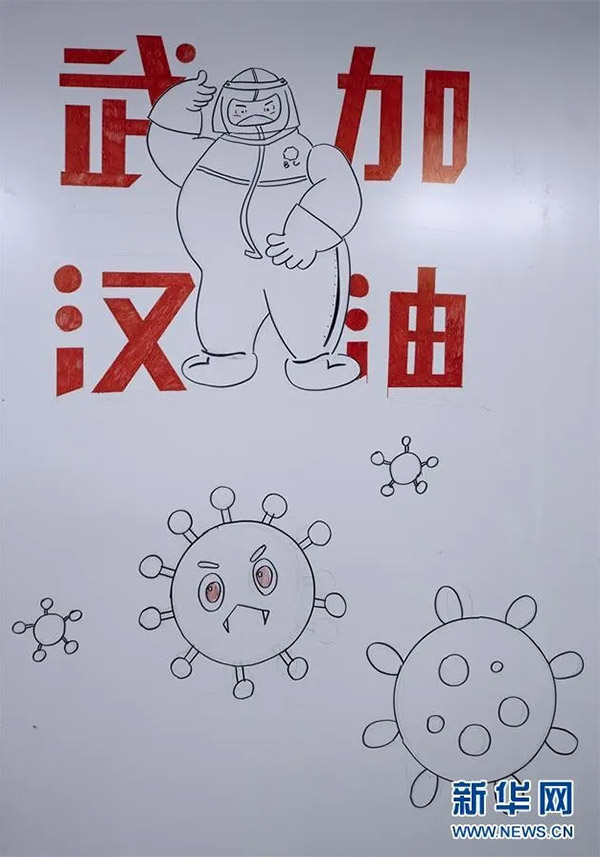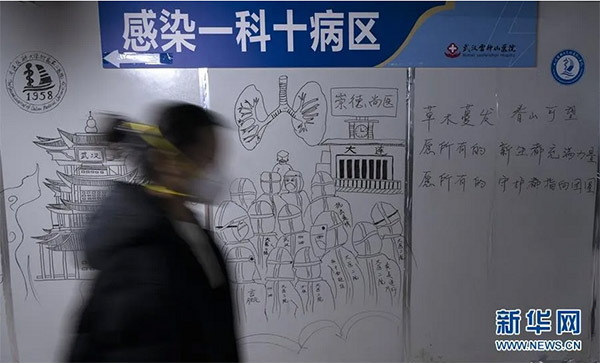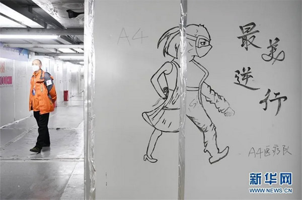 雷神山医院建成后,各地医疗队进驻这里,全力以赴救治患者。雷神山医院走道间的墙,逐渐成为医护人员、工作人员甚至患者表达内心感受的窗口,他们把自己的所见所闻、所思所感,化作温情而有力的线条、文字,笔触间寄托了美好祝愿,也展示了战胜疫情的信念与决心!