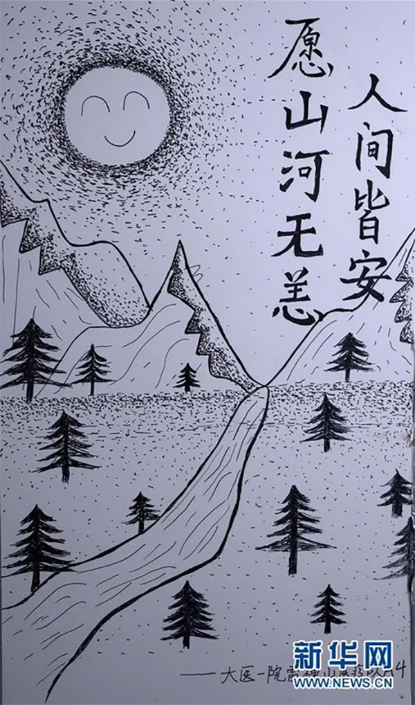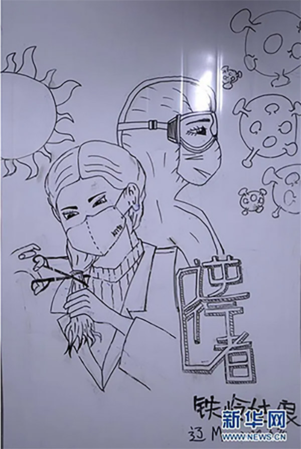 这是3月4日在武汉雷神山医院“艺术长廊”里拍摄的图画。新华社记者 程敏 摄