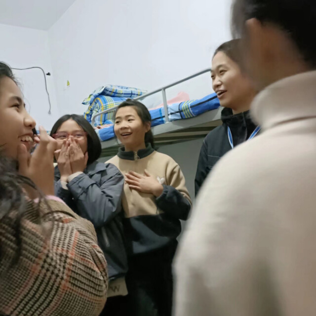 一天的带教生活伴随着晚自习的下课铃结束,随着班级的队伍,我们走进了孩子们的宿舍,希望能和他们聊生活、聊未来,走进她们的内心世界。一开始的我们,也有点害羞与不知所措,不知该怎么和他们聊天相处。
