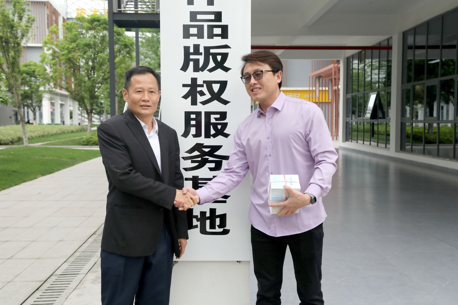 揭牌仪式上,唐贵平代表省文联向马栏山版权服务中心,赠送了由省文联权保处编印的《文艺维权知识手册》。