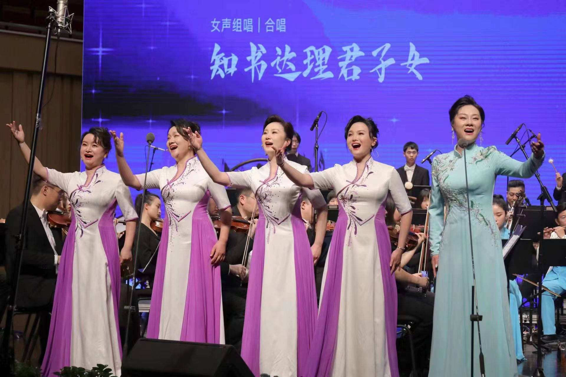 曲目寄托着深深的文化情结。“茫茫暗夜长,女书是明灯。滔滔苦海中,女书舟载行。读天读地读岁月,写夫写儿写丹心。”女声小组唱《知书达理君子女》颂咏女书文化中的智慧、坚忍、包容与善良。“潇水入湘,一路跌宕。纸短情长,天下书香”,清新明丽回味悠长。