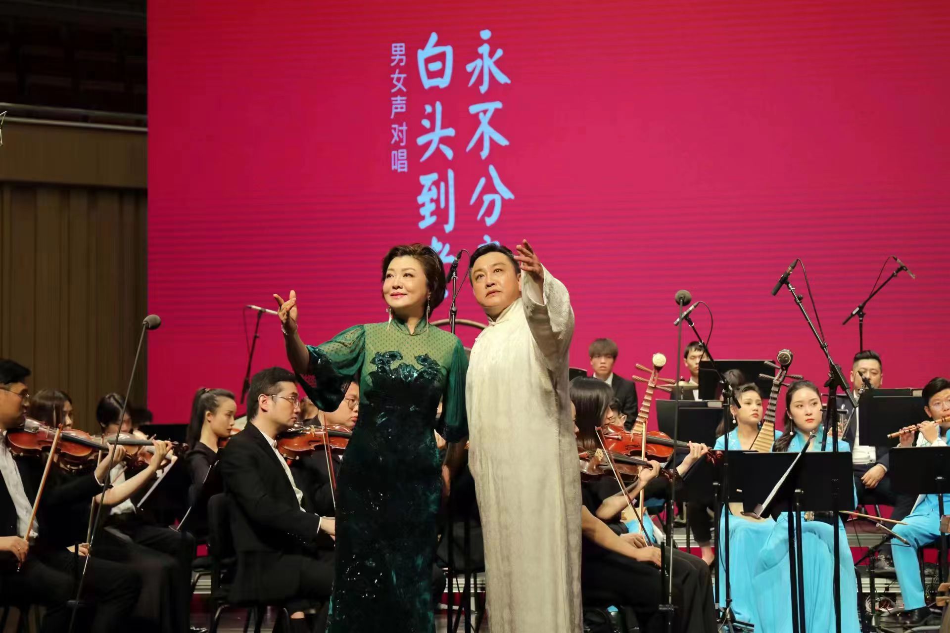 这场音乐会既有激昂慷慨的曲目,又有悠扬婉转的桥段,一个“情”字贯穿始终,弘扬主旋律,有着动人心弦的力量。