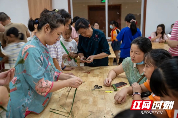 红网时刻新闻7月14日讯(通讯员 马芳 记者 袁思蕾)7月13日,由长沙市雨花区教育局指导,长沙市群众艺术馆主办的2022年暑期少儿传统文化公益实践活动正式启动。全国三八红旗手、湖南省编织工艺大师、省级非物质文化遗产项目长沙棕叶编市级代表性传承人周佳霖来到活动现场,用她灵巧的双手和耐心的传授让孩子们领略棕编之美。