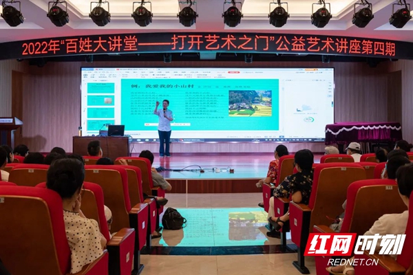 红网时刻新闻7月14日讯(通讯员 马芳 记者 袁思蕾)7月12日下午,湖南省文联主席团委员、省音协专职副主席兼秘书长、一级编剧、词作家金沙在长沙市群众艺术馆开展“百姓大讲堂——打开艺术之门”公益艺术讲座活动。