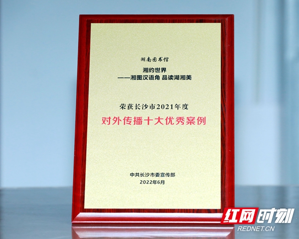 红网时刻新闻7月20日讯(记者 袁思蕾 通讯员 陈昊)记者今天从湖南图书馆获悉,在日前举办的长沙市2022年度外宣工作协作交流会上,由湖南图书馆摄制的《湘约世界——湘图汉语角 品读湖湘美》短视频作品,荣获长沙市2021年度对外传播十大优秀案例。