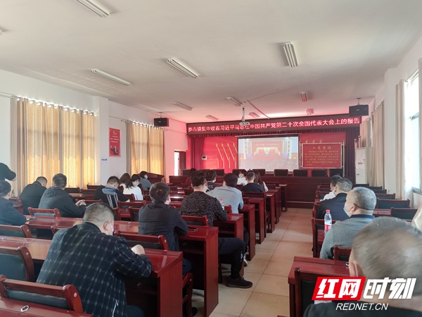 湖南省益阳市赫山区八字哨镇全体镇村干部、党员代表集中观看党的二十大开幕会。