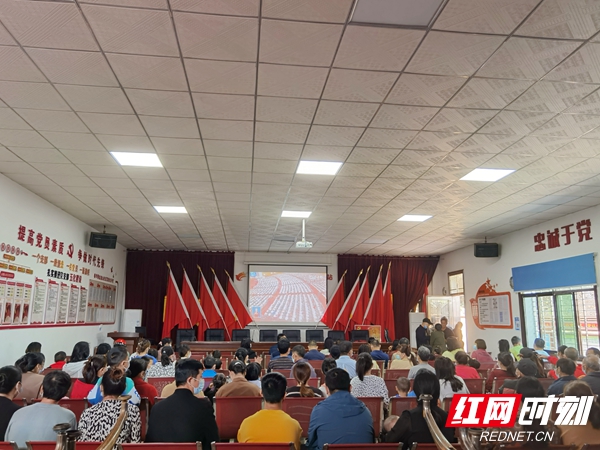 湘潭市岳塘区荷塘街道荷塘村集中观看党的二十大开幕会。