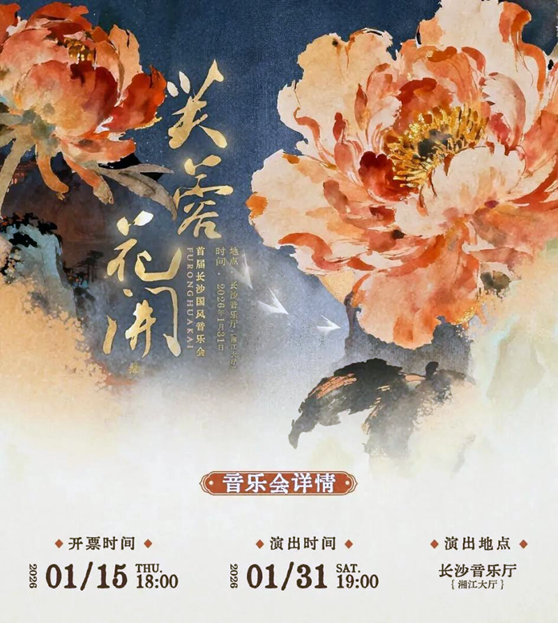 🔊简介:超豪华国风演出阵容,丰富多样的趣味玩法,“芙蓉花开”2026首届长沙国风音乐会即将于本周六与大家见面。倘若你也是国风爱好者,不妨前往音乐厅共赴这场盛会。