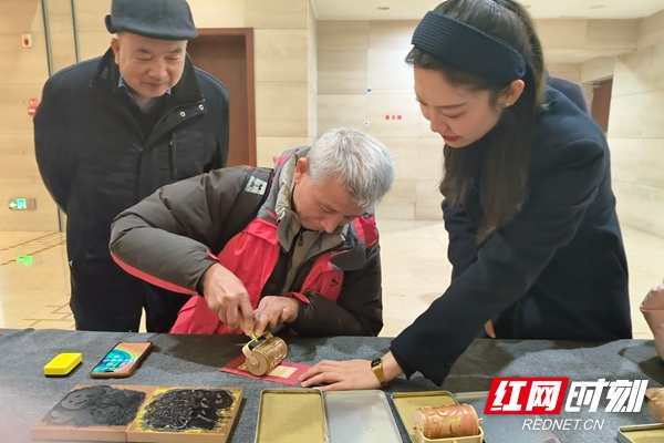 在“墨印千年·福启新岁”传统拓印体验活动现场,不少游客在博物馆教育员的指导下,亲手体验古老技艺。当红纸遇上朱砂墨,当历史跃然于指尖,参与者们用最传统的方式,拓印出了属于自己的马年专属红包和喜庆年画。
