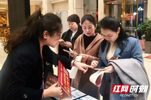湖南图书馆工作人员为两会代表委员提供现场信息咨询服务。
