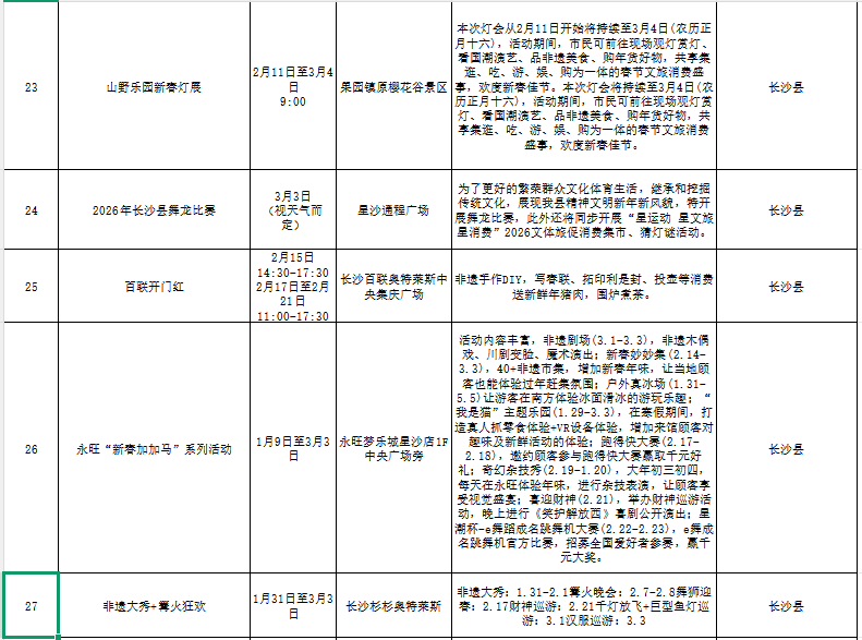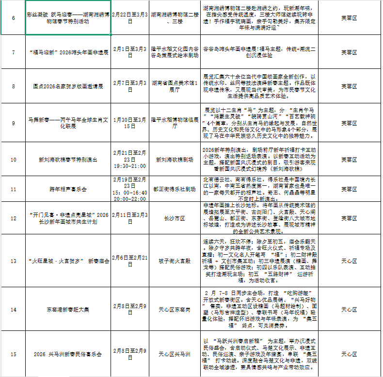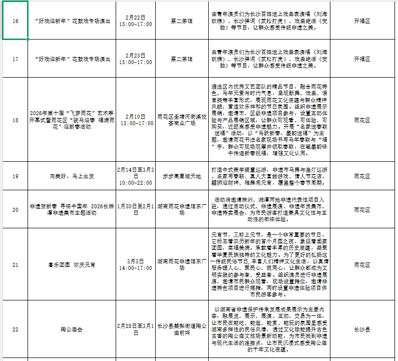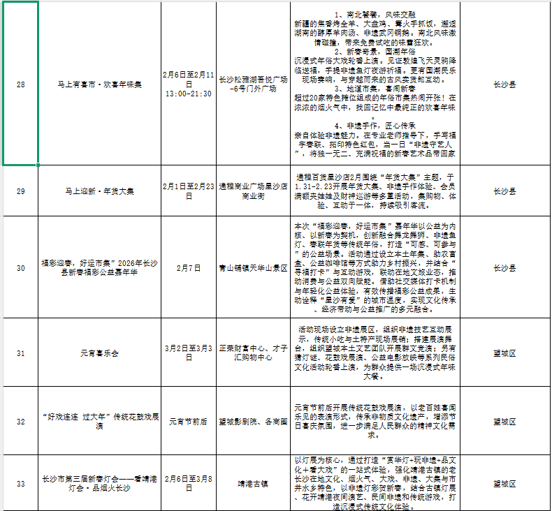 “非遗贺新春 寻味中国年”长沙各区县(市)主题活动汇总表