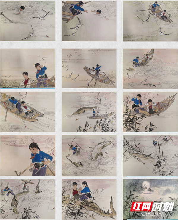 红网时刻新闻3月28日讯(记者 袁思蕾 通讯员 王恩超 摄影 张玲)20世纪50年代至80年代是中国连环画创作的高峰期,到20世纪70年代末至80年代中期则达到鼎盛,这一时期的连环画在艺术创作、出版规模、社会影响力等方面均达到空前高度,被誉为中国连环画的“黄金时代”。连环画《智捕大鲟鱼》是这一时期的代表作,而该作品由杜炜于1973年创作。