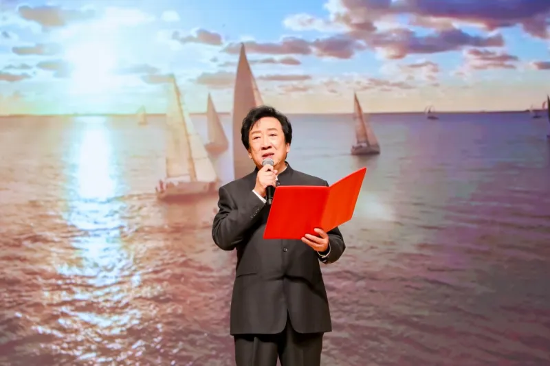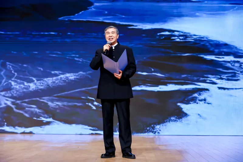 2026年第十届华语诗歌春晚最具亮点之处,是在三个诗歌朗诵篇章之间,安排了三个诗歌颁奖环节。在第一个颁奖环节,主持人邀请华语诗歌春晚总策划、北京师范大学中国当代新诗研究中心主任、著名评论家谭五昌教授首先上台,在宣布获奖诗人名单之前,谭五昌教授进行了热情洋溢、态度真诚的发言,他首先向全体与会嘉宾们简介了十届华语诗歌春晚的举办历程,他表示华语诗歌春晚至今举办了十届,他和他的团队克服各种困难坚持了下来,极不容易,可用“千辛万苦”四字加以概括与形容。接着他话题一转,指出华语诗歌春晚这个平台通过朗诵艺术家与专业朗诵者用声音演绎、朗诵优秀的华语诗人作品,可以广泛传播优秀华语诗人的精品力作,使之广为人知。谭五昌教授重点强调,真正意义上的诗歌朗诵,是优秀诗歌作品获得经典化地位的重要途径之一,他以中国现代诗人徐志摩的《再别康桥》、中国当代诗人舒婷的《致橡树》、海子的《面朝大海 春暖花开》以及吉狄马加的《彝人之歌》等中国现当代诗人的经典性诗作为例,充分彰显出诗歌朗诵本身的重要性价值。接着,谭五昌教授再次强调华语诗歌春晚始终坚持的五大原则:“学术性、艺术性、纯粹性、国际性、公益性”,这一点从不动摇,他表示,杰出与优秀的中国诗人、华语诗人是中华民族的宝贵财富,他和他的团队成员十年以来都是义务地为传播广大优秀华语诗人的优秀作品而无私奉献,即使再苦再累再难,但只要能够得到广大诗人、评论家、学者、艺术家及社会各界人士一如既往的充分肯定与热忱支持,他们就会一直坚持下去,无怨无悔。