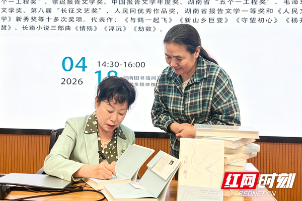 4月18日下午,湖南省作协名誉主席、省网络作协主席余艳携新书《与鹤一起飞》作客湘图讲坛。