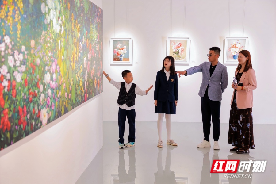 红网时刻新闻4月26日讯(记者 胡邦建)4月25日,“花间意象・万象生”土立军花卉油画作品展在洋湖美术馆开展,40余幅精心创作的花卉油画作品集中亮相,以灵动笔触、温润色彩,勾勒出自然花木的万千姿态,也诉说着一位跨界南北的画家,对艺术、故土与生活的深情告白。