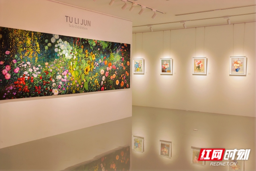 4月25日,“花间意象・万象生”土立军花卉油画作品展在洋湖美术馆开展。
