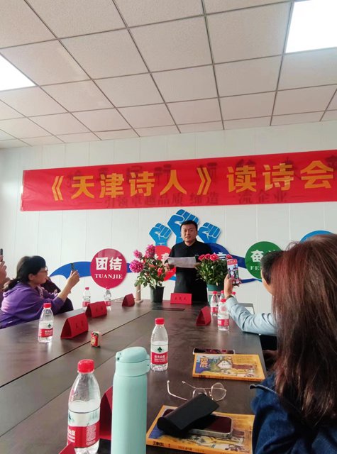 天津诗人读诗会发起人、诗人罗广才宣读了“天津诗人读诗会”宣言,并宣布:今天是天津诗人读诗会的第一期活动,在武清区午阳印刷股份有限公司隆重启动。罗广才、余数、刘萍、王宏、亦凝、宋丽萍、罗怡、王尧天、尚尚,刘雨晴、王宇等老中青三代诗人共同分享了中外诗人的优秀诗作:泰戈尔的《用生命影响生命》、顾城的《我是一个任性的孩子》、海子的《日记》、徐敬亚的《我告诉儿子》、伊蕾的《独身女人的卧室》、大卫的《芒种:与母亲书》《母亲,我看你来了……》《致母亲》、穆旦的《森林之魅》《冥想》、舒婷的《致橡树》、阿来的《草》、普光泉的《感谢》、饶阶巴桑的《母亲》、余秀华的《我爱你,祖国》等。诗人罗广才对每一首诗都做了经典而独到的点评,与会新老诗人获益颇丰。