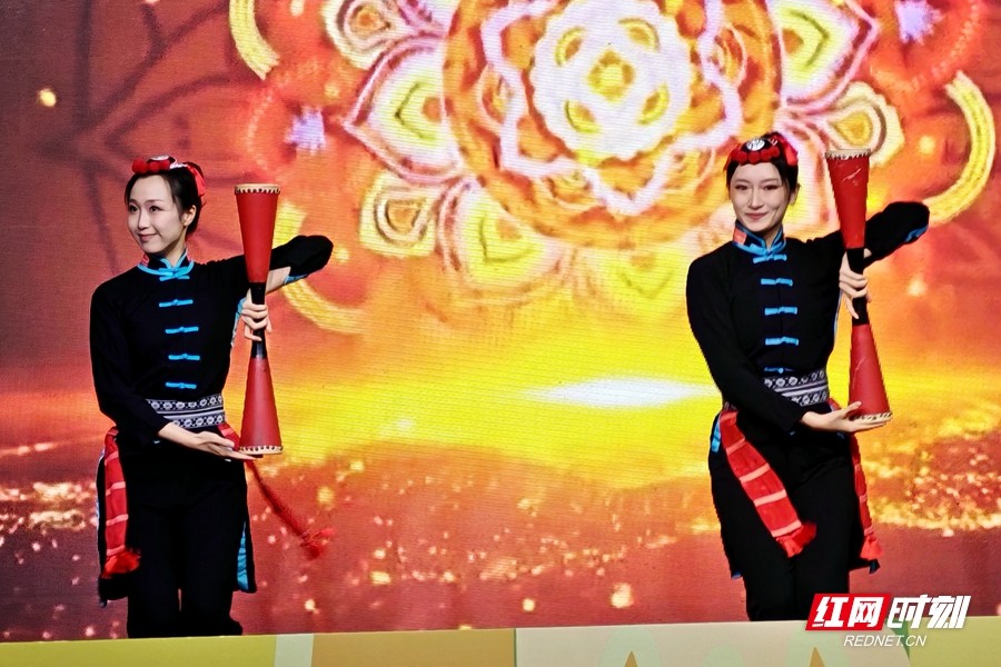 长沙市芙蓉区东茅街茶馆内,一段刚劲有力的《传·鼓》表演拉开了活动序幕。身着瑶族传统服饰的舞者手持长鼓,身姿矫健,将千年非遗的活力与激情展现得淋漓尽致。