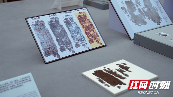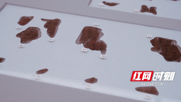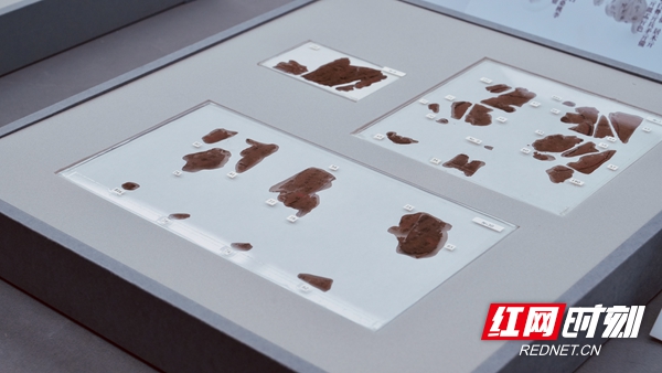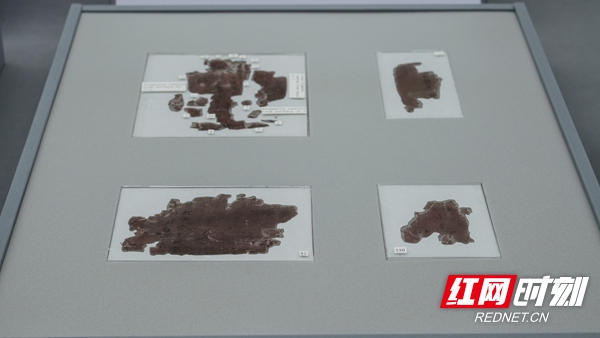划拨入藏仪式结束后,红网时刻新闻记者在湖南省博物馆一楼文物观摩室见到了长沙子弹库战国帛书第二、三卷《五行令》与《攻守占》文物,共计132件(组)。