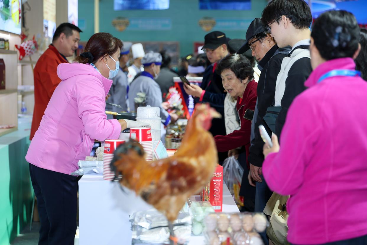 11月20日,观众在安徽展区体验美食。新华社记者 王翔 摄